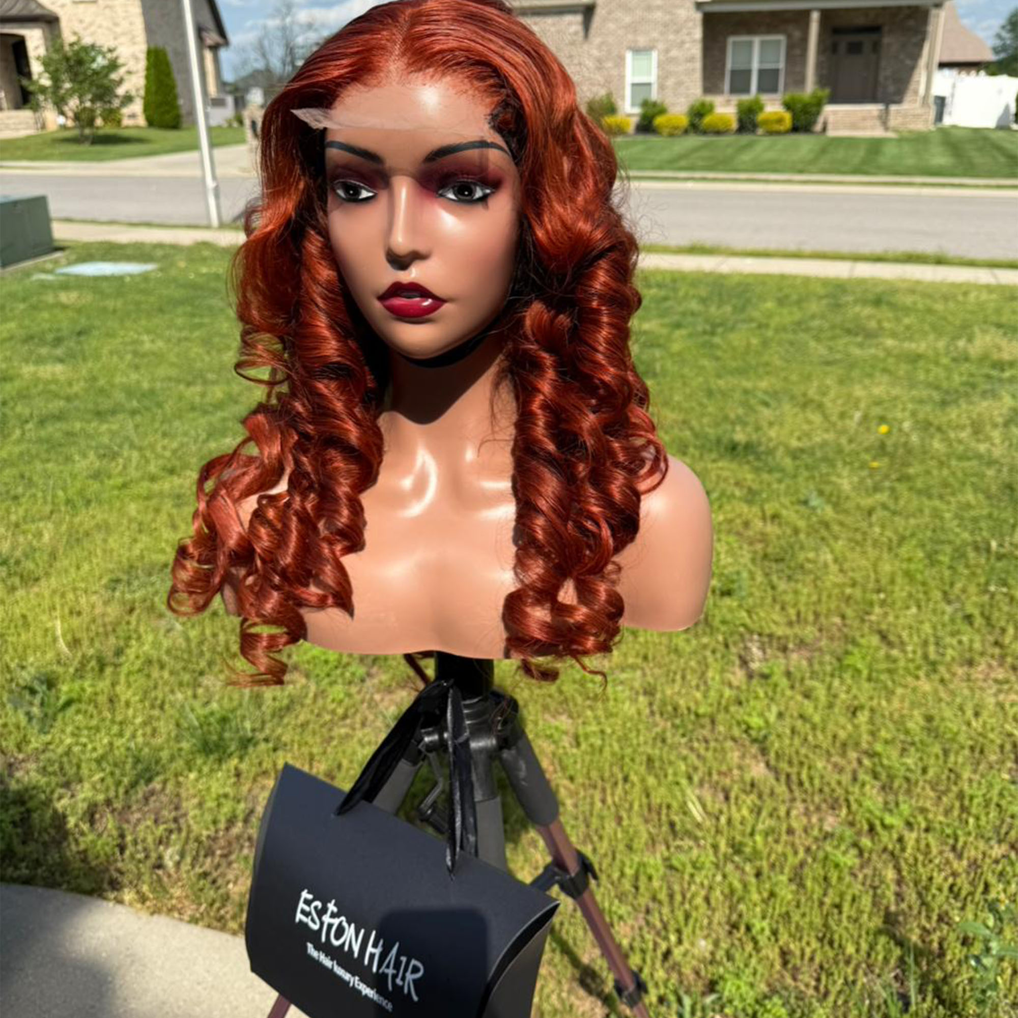 Description: 4×4 closure wavy wig Burnt orange (350) color